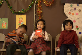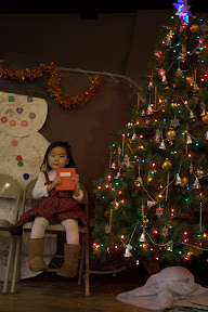 ちょっと入場が遅れてしまったので、会場に入るともうサンタクロースが舞台に上がっています。