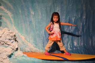 出口ではサーフボードに乗って記念撮影です。